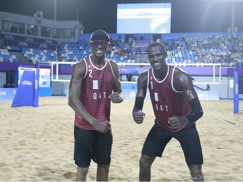تأهل المنتخب القطري للكرة الشاطئية (1) والمكون من الثنائي أحمد تيجان وشريف يونس إلى نصف نهائي دورة الألعاب الآسيوية المقامة في مدينة هانغتشو الصينية، بعد تخطيه نظيره الإيراني بشوطين دون رد في المباراة التي أقيمت بينهما اليوم ضمن منافسات ربع النهائي.