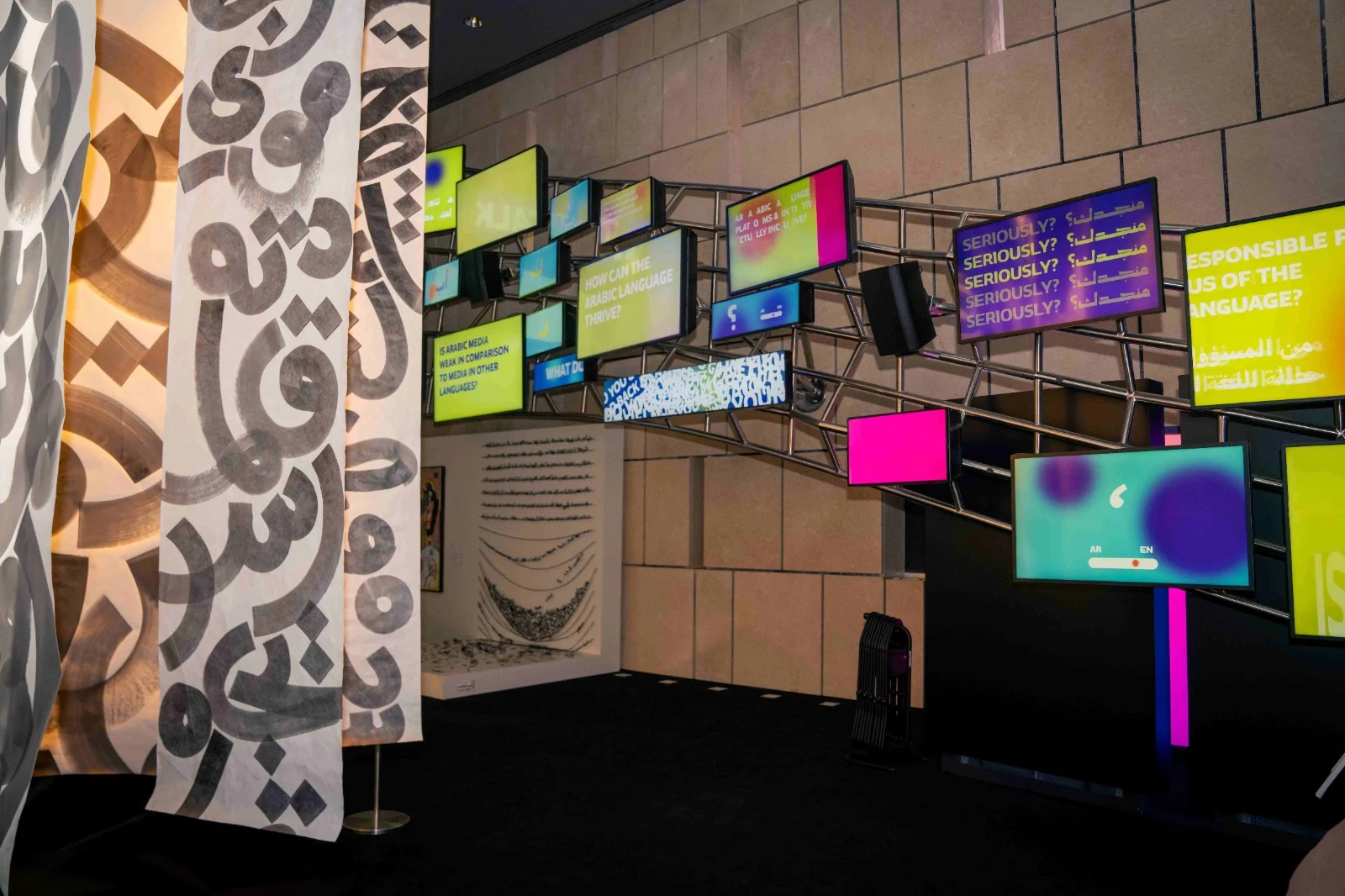 يضم المعرض مجموعة متنوعة من الأعمال الفنية المكلّف بها، والمحتوى التفاعلي الذي يستكشف ثراء وتطوّر اللغة العربية والثقافة.