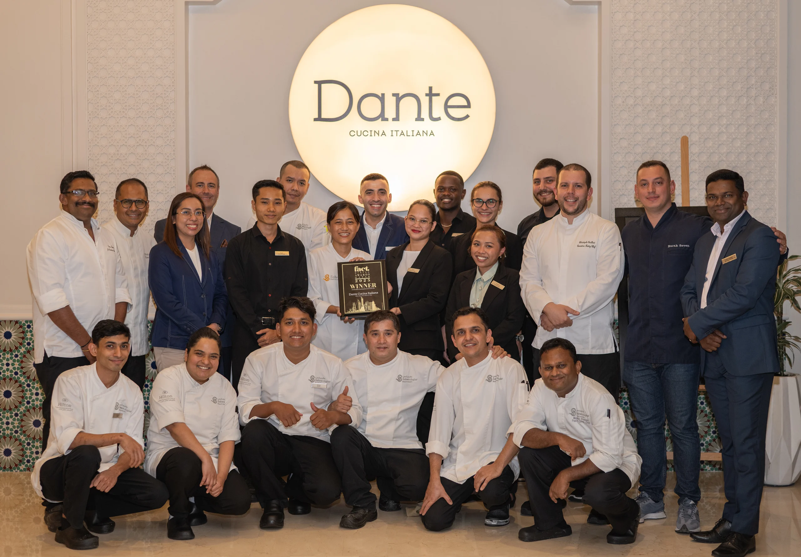 كما نال مطعم Dante Cucina Italiana التابع لـ منتجع هيلتون سلوى جائزة “أفضل مطعم إيطالي في قطر”، ليؤكد مكانته كمقصد رئيسي لعشاق المطبخ الإيطالي الأصيل ضمن أجواء راقية وبيئة ضيافة استثنائية تجعل من هيلتون سلوى عنوانًا للتجارب الذوقية المتميزة في عالم المأكولات الفاخرة.