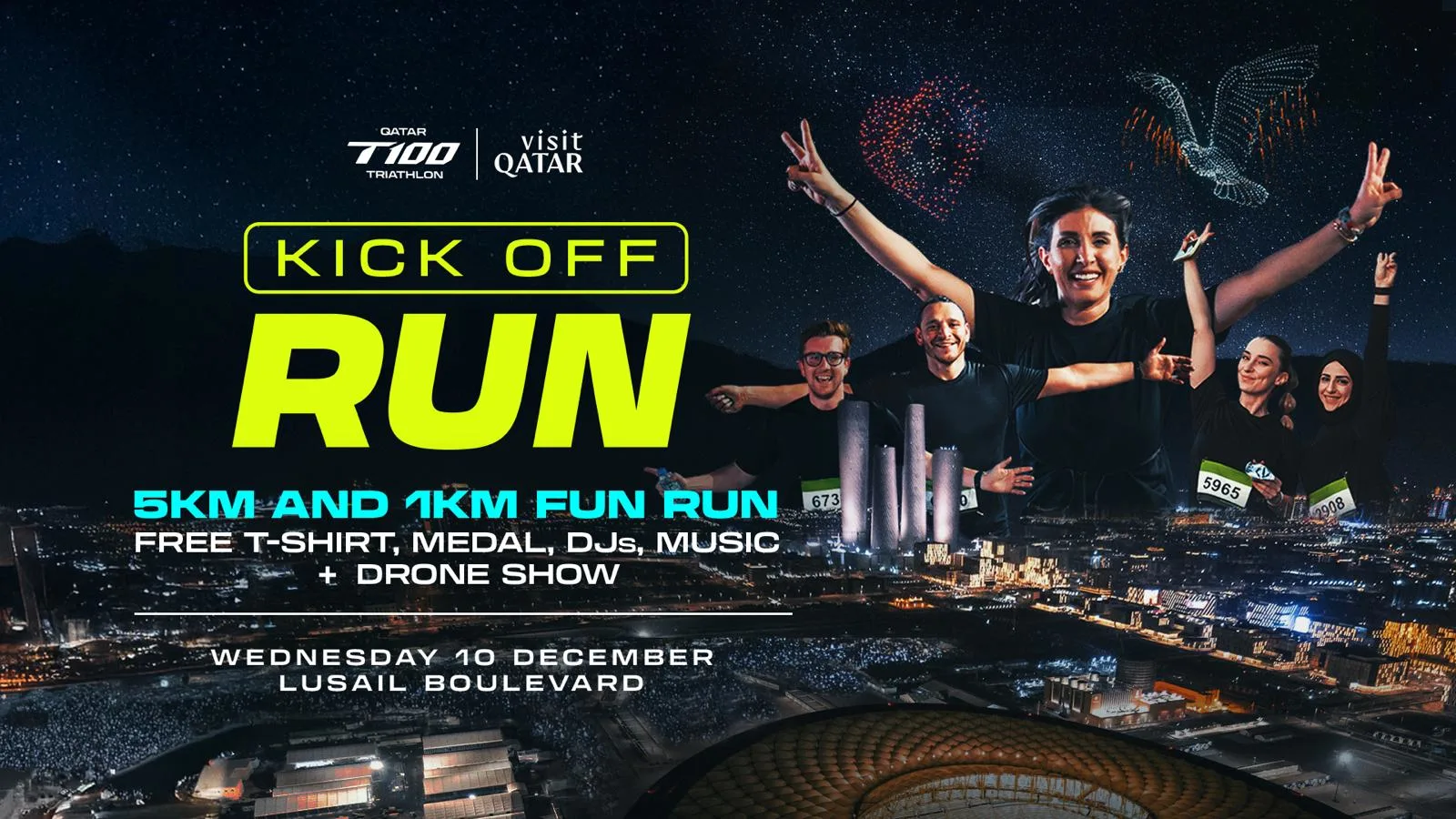 يمثل سباق Qatar T100 Kick Off Run الانطلاقة الحقيقية لمهرجان الترايثلون الممتد لأربعة أيام في مدينة لوسيل، ليشكل بداية أجواء رياضية حافلة تعكس مكانة قطر كوجهة عالمية لاحتضان الفعاليات الكبرى.