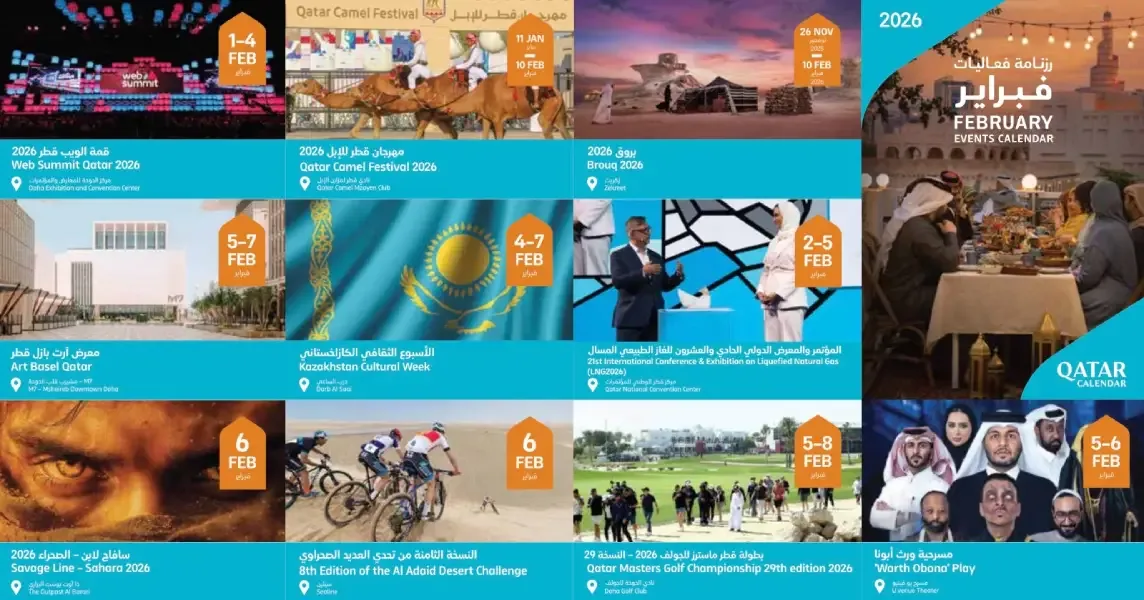 ويعكس برنامج فبراير 2026 تنوع الفعاليات التي تستضيفها دولة قطر، من الابتكار والأعمال إلى الثقافة والرياضة والترفيه، مؤكدًا استمرار الزخم في استقطاب الفعاليات الإقليمية والعالمية وتوفير تجارب غنية للمقيمين والزوار على حد سواء.