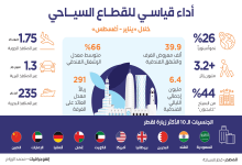 وذكرت نشرة الإحصاءات الشهرية التي يصدرها الجهاز، اليوم، بأن عدد الزوار القادمين من دول مجلس التعاون الخليجي شكل ما نسبته 43 % من إجمالي عدد الزائرين، أما فيما يخص الزوار حسب نوع المنفذ فقد شكل الزوار عن طريق الجو النسبة الأعلى حيث بلغت نسبتهم 62 % من إجمالي عدد الزوار.