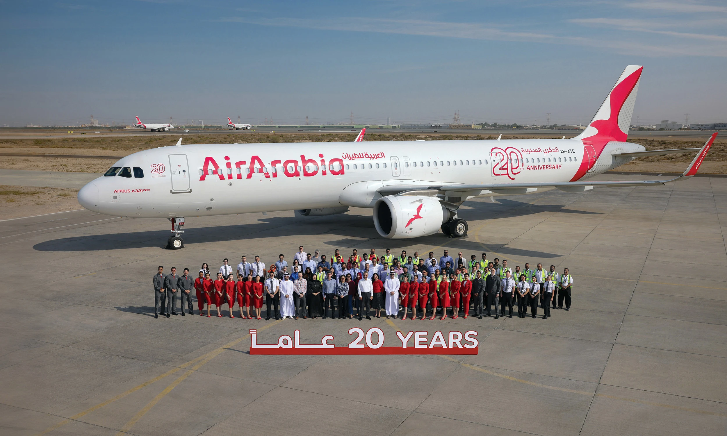 بعد مرور عشرين عاماً على تأسيسها نقلت خلالها ما يزيد عن 150 مليون مسافر عبر شبكة واسعة تضم أكثر من 190 وجهة انطلاقاً من سبعة مراكز تشغيلية، تواصل مجموعة “العربية للطيران”، أول وأكبر شركة طيران اقتصادي في منطقة الشرق الأوسط وشمال أفريقيا، ترسيخ مكانتها الرائدة في قطاع الطيران. وبمناسبة مرور عشرين عاماً على تأسيسها، كشفت الشركة عن شعار يزين طائراتها تكريماً لمسيرة الشركة الرائدة والمدعومة بجهود وتفاني فريق عملها.