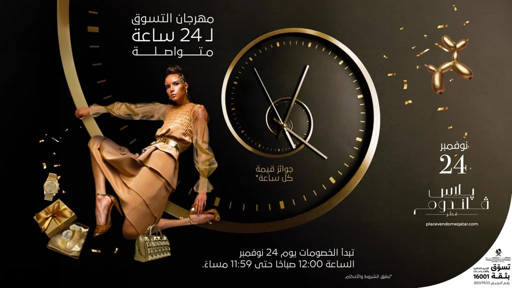 كشف پلاس ڤاندوم عن افتتاح مهرجان التسوّق لـ 24 ساعة متواصلة لأول مرة في قطر في 24 نوفمبر الجاري، حيث تعِد الوجهة المستوحاة من الطراز الباريسي الراقي بمزيجٍ لا مثيل له من التسوّق والترفيه والتسلية، تكمّله الإطلالة الآسرة على الواجهة البحريّة وذلك بدءًا من منتصف الليل حتى آخر ثانية من اليوم.