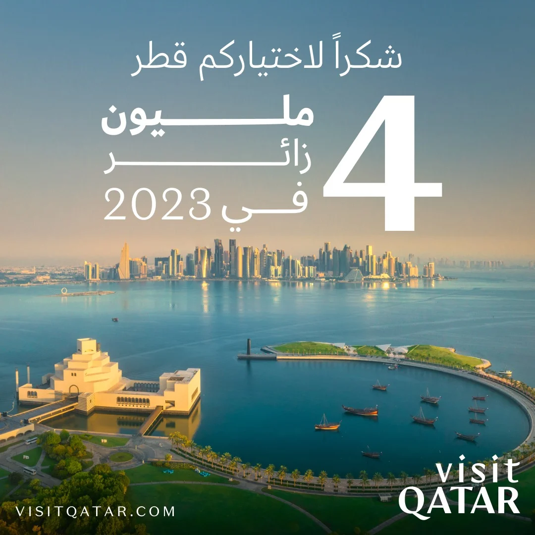 وكشفت قطر للسياحة عن زيادة كبيرة في أعداد الزوار القادمين إلى قطر، مما يعكس الزخم الإيجابي الذي خلّفته بطولة كأس العالم لكرة القدم FIFAقطر 2022 TM، وذلك بالتزامن مع الجهود والمبادرات المستمرة التي تبذلها الدولة للنهوض بالقطاع السياحي.