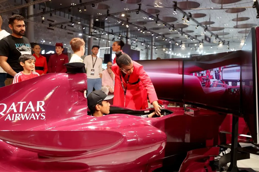 وتشارك الخطوط الجوية القطرية بجناح مميز يتميز بالفخامة والرقي، ويقدم الجناح عدة تجارب تفاعلية لزوار المعرض مثل: جهاز محاكاة الفورمولا 1 الذي يقدم لعشاق التشويق والمغامرة في جناح الخطوط الجوية القطرية تجربة غنية وغامرة، والتي يظهر من خلالها مدى التكامل بين رياضة السيارات وتجربة الطيران.