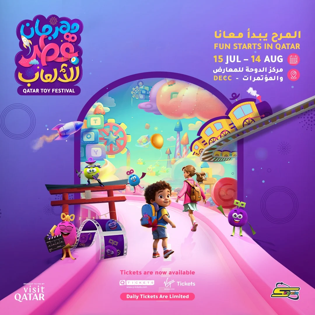 ويتيح مهرجان قطر للألعاب فرصة للأطفال للقاء شخصيات ألعابهم المفضلة وأشهر المؤثرين والتفاعل معهم، مما يجعله الوجهة المثالية للعائلة خلال هذا الصيف. ويمكن حجز التذاكر والبطاقات العائلية من خلال الروابط: https://tickets.virginmegastore.me/ و https://events.q-tickets.com/qatar/eventdetails/5980481474/qatar-toys-festival.