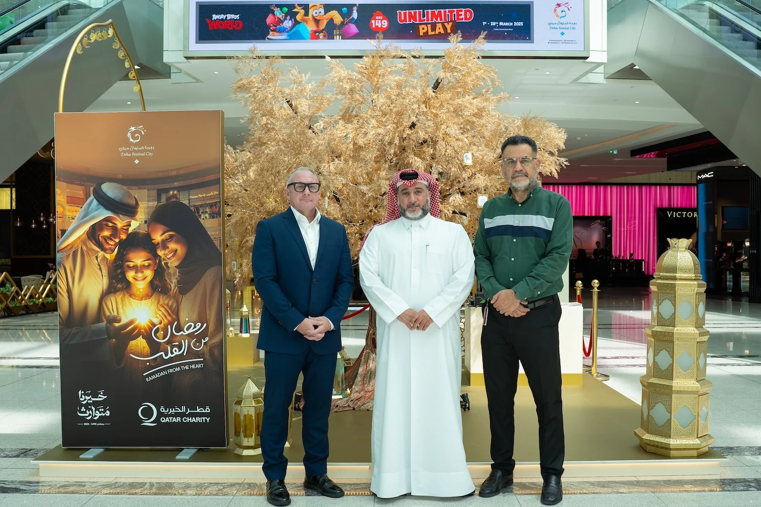 على مدار أيام شهر رمضان المبارك، ستستضيف الردهة المركزية في دوحة فستيفال سيتي مبادرة “أغصان الخير”، حيث يمكن للزوار المساهمة في حملة مؤسسة قطر الخيرية، والتي تدعم 4.5 مليون شخص محتاج في 40 دولة. تحمل أغصان الشجرة بطاقات أمنيات، تدعو كل منها إلى تحقيق هدف خيري، يشمل كفالة الأيتام، وتوفير وجبات إطعام رمضانية، وتقديم المساعدة الإنسانية للمرضى، والمعوزين، وكبار السن، والغارمين، ودعم برامج الإفطار في قطر. للمشاركة في الحملة يتعين فقط مسح رمز الاستجابة السريعة الموجود على الشجرة، للتبرع مباشرة عبر تطبيق “قطر الخيرية”.